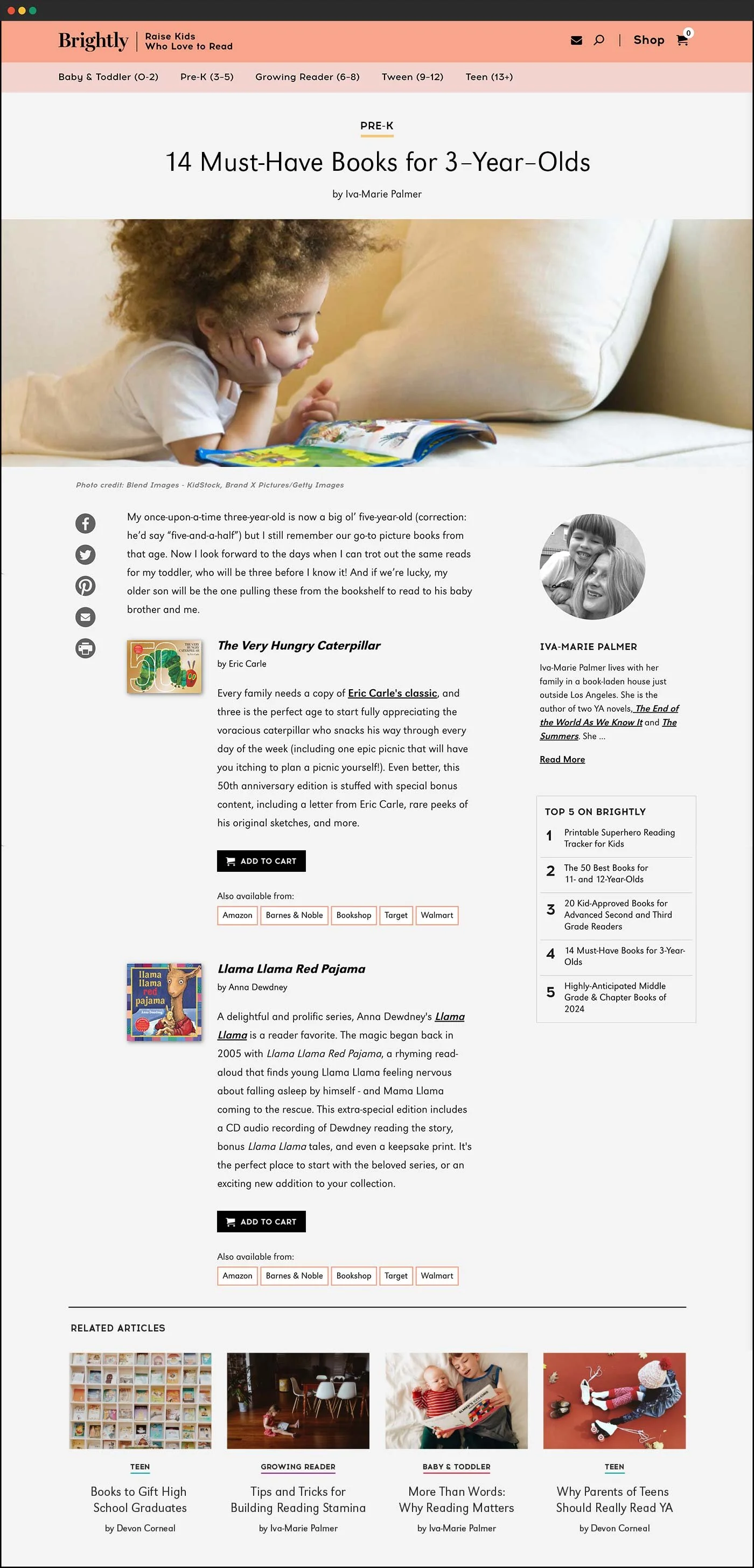 ReadBrightly.com is a Webby-nominated content marketing site that provides tools for parents, educators, and caregivers to keep kids engaged with books at every age and stage of life.